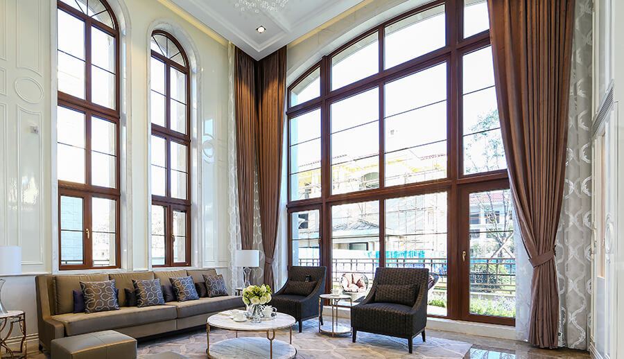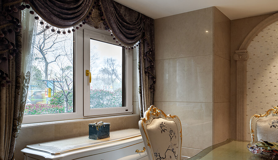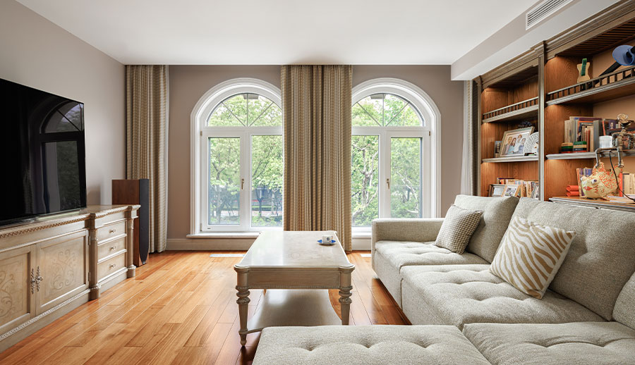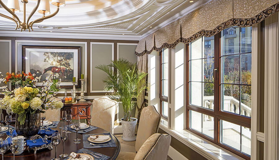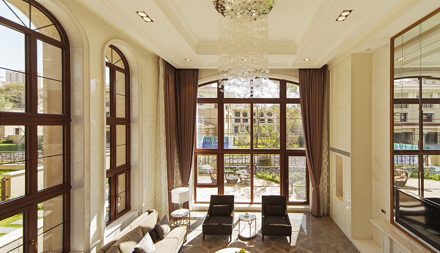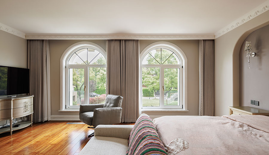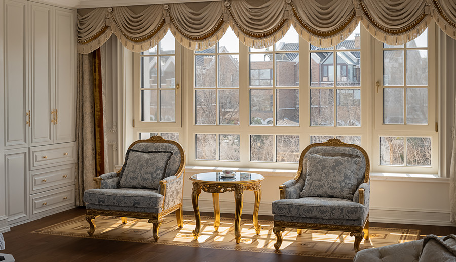 可配搭圆弧窗,和立弧窗等异型窗来显衬欧式的装修风格。配备欧式格栅将更加营造欧式氛围。