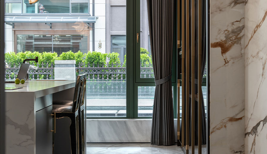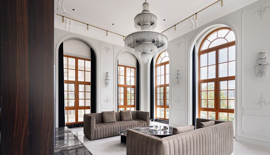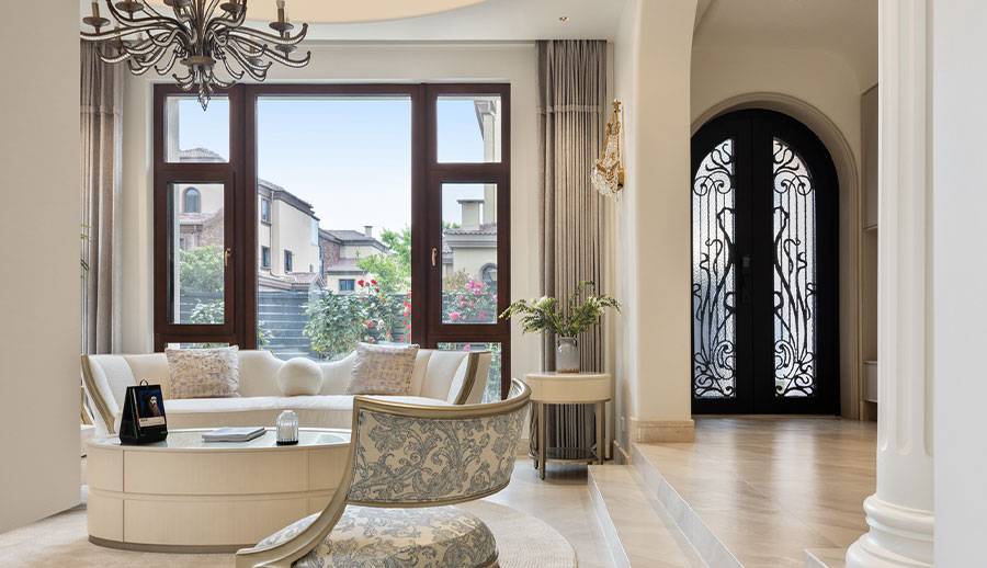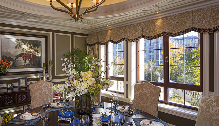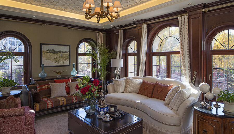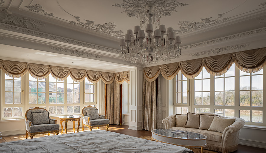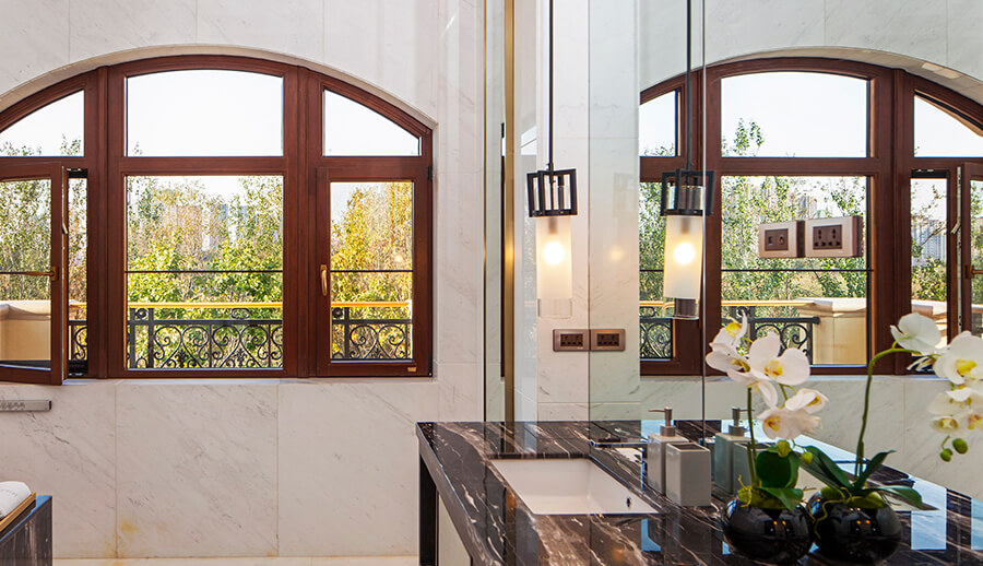 可配搭圆弧窗,和立弧窗等异型窗来显衬欧式的装修风格。配备欧式格栅将更加营造欧式氛围。