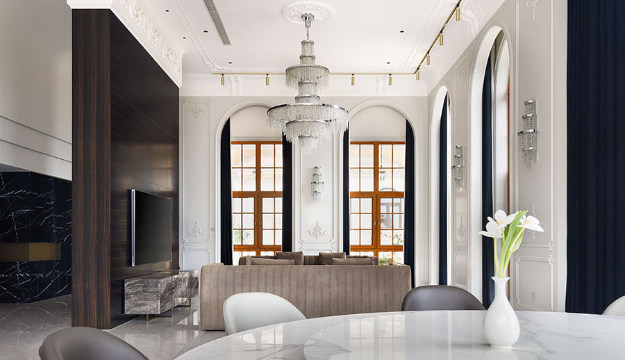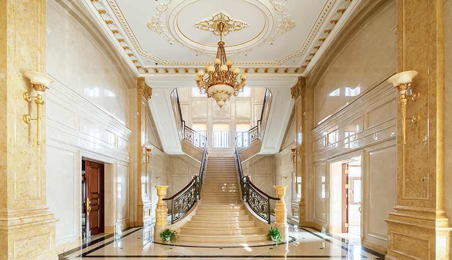 在室内装修的设计中,简约欧式风格大量使用铁制构件,将玻璃、瓷砖等新工艺,还有铁制品、陶制品等。如果说古典欧式风格线条复杂、色调低沉,那么简约欧式风格则是在古典欧式风格的基础上,以更加简单的线条代替复杂的花纹,以明快清新的颜色保留古典的奢华与美,又能体现现代生活的舒适。